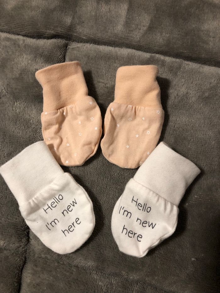 2 paires de moufles naissance en très bon état