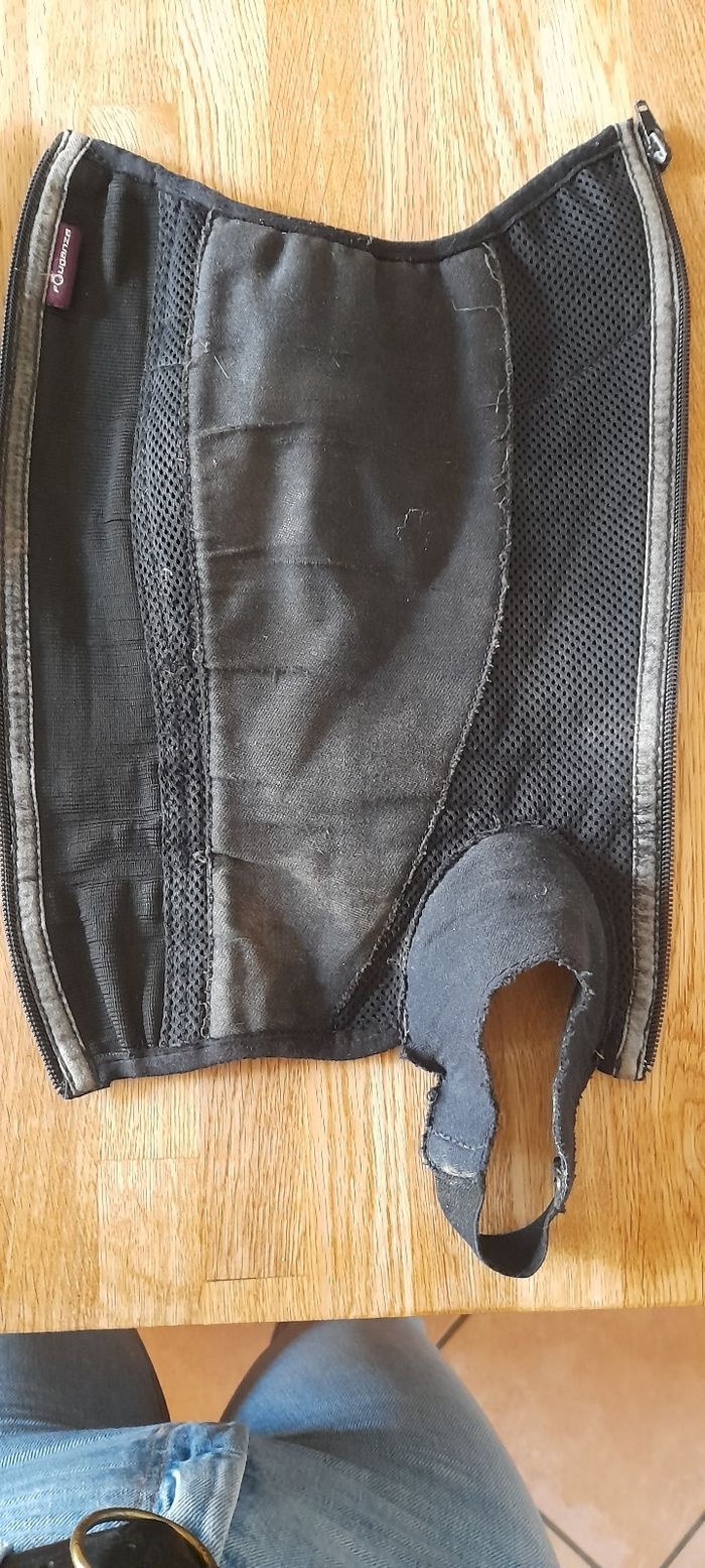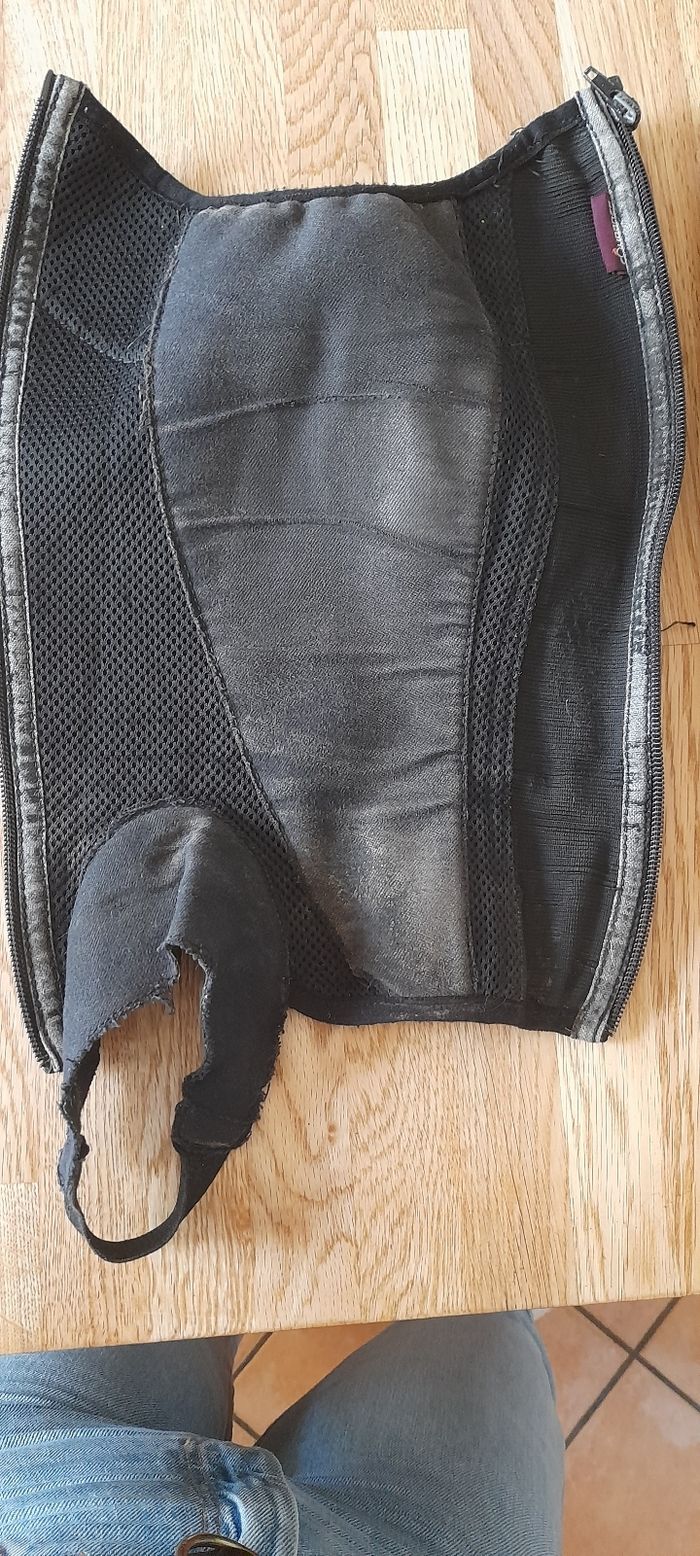 Chaps d'équitation à porter avec des boots. Porté régulièrement donc traces d'usures visibles. Taille : -tour du mollet : 28cm - longueur : 30cm