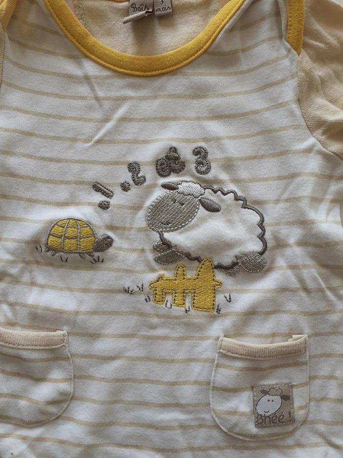 Pyjama léger été unisexe coton 3 mois . Fermeture par pression entre les jambes. Bon etat