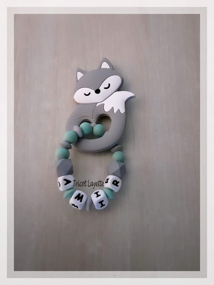 Anneau de dentition renard Réalisé avec du ruban à la place du fil, pour plus de sécurité Prénom au choix (personnalisation par message) Les couleurs peuvent être changées Delais de fabrication: maximum 5 jours (hors dimanche et jour férié) Je ne réalise l'anneau qu'une fois le paiement validé, une photo vous sera envoyée avant l'envoi.
