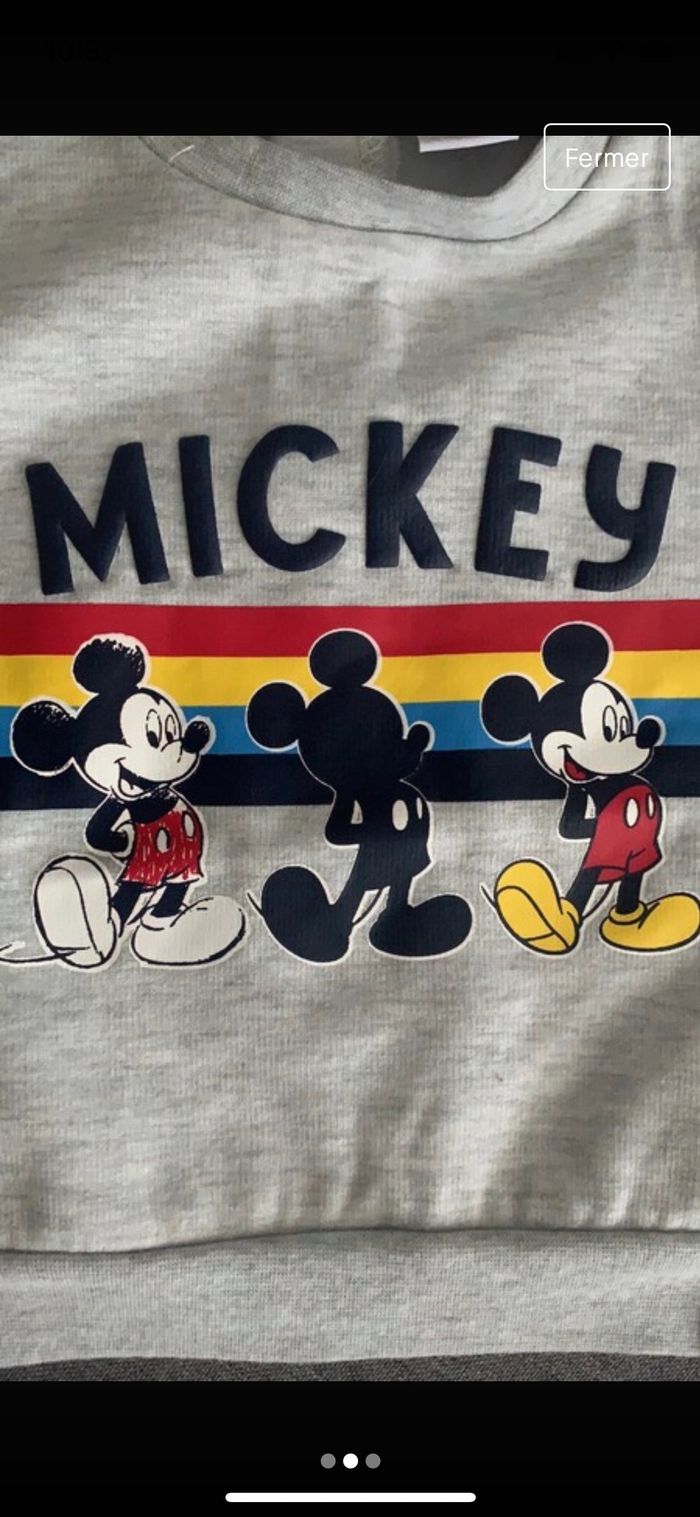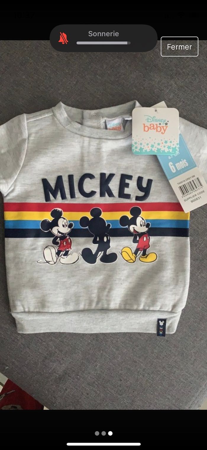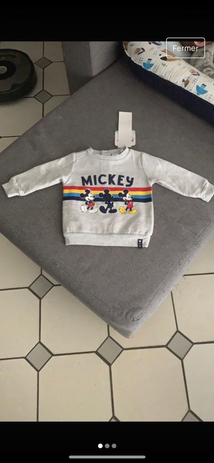 Bonjour, Je vends un pull Mickey gris, neuf avec étiquette achetée à 19,90€ Taille 6mois