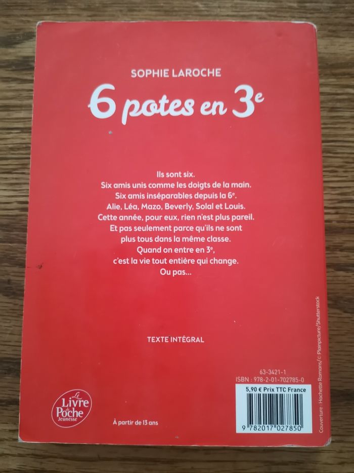 Livre " 6 Potes en 3e" de Sophie Laroche. État moyen. Voir photos.