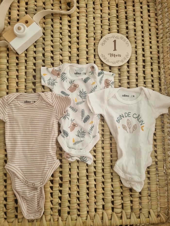 Lot de 3 bodys gémo neuf Taille 1 mois
