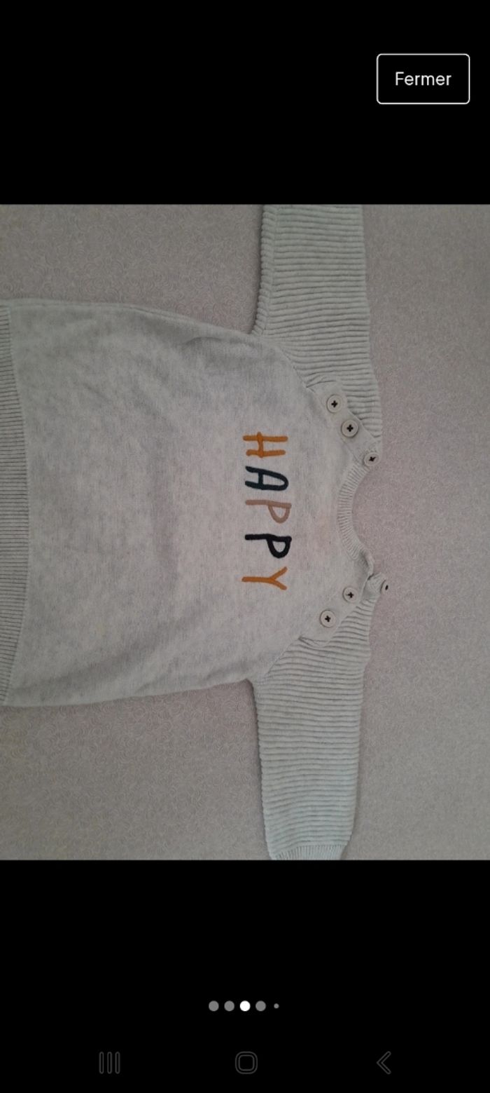 En taille 9 moi il 2 pull il a un des pull tâcher Et 2 haut à manche longue 3 pantalon Et 1 salopette