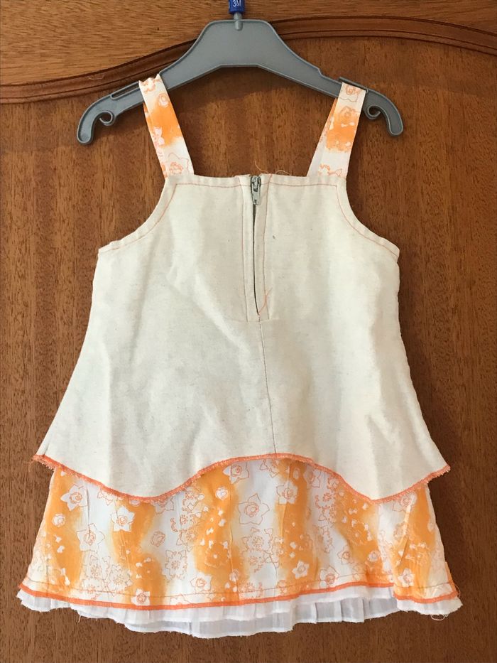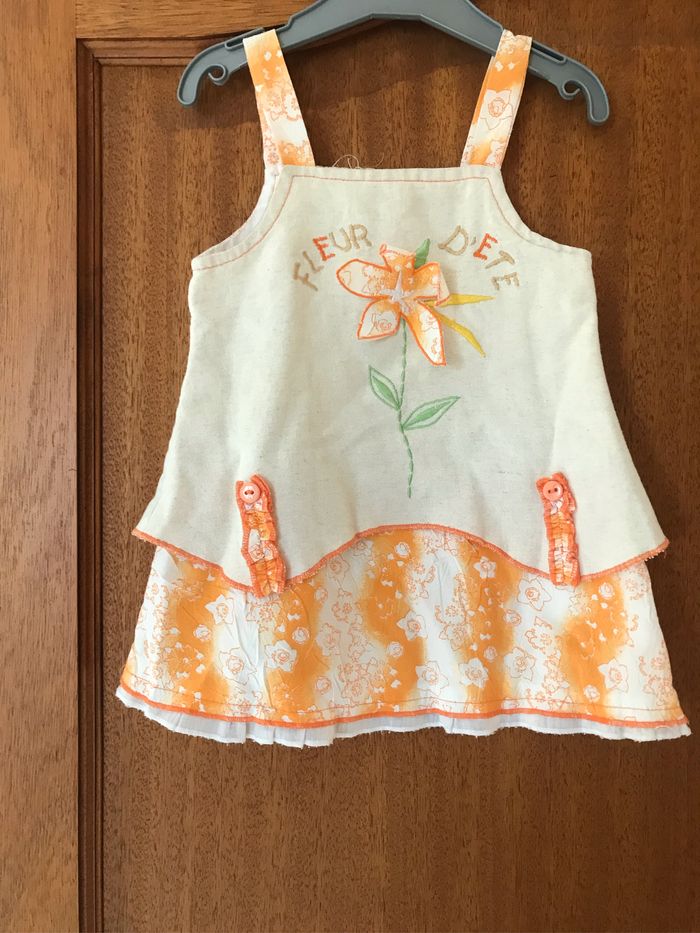 Robe avec motifs 6 mois en 80% coton et 20% Lin doublure 65% polyester et 35 % coton avec fermeture et sans marque