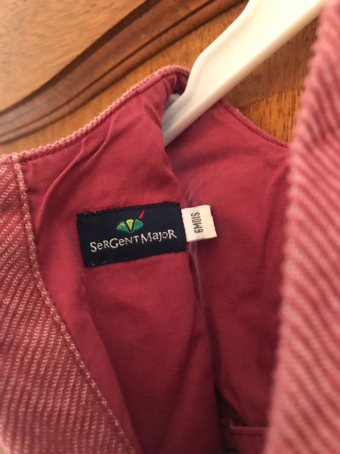 Robe 6 mois sergent major avec motif « jolie poupée » petite poche sur le devant avec volant sans manche fermeture boutons