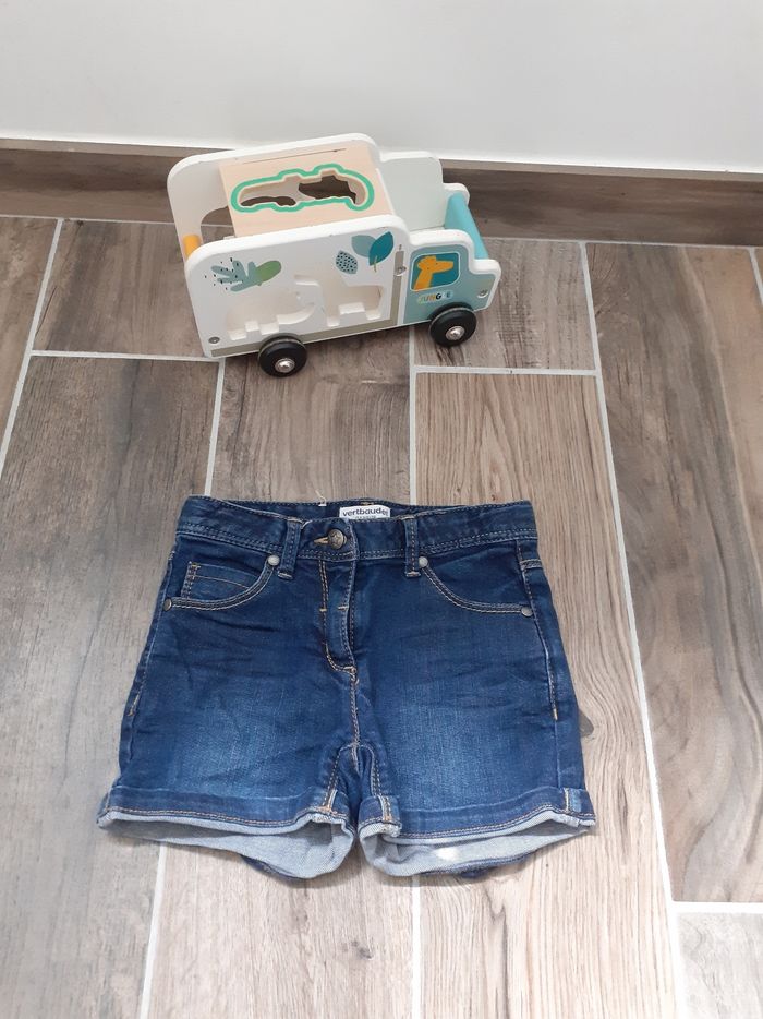 Short Short en jeans taille 5, état neuf , avec un l'élastique de réglage à la taille.