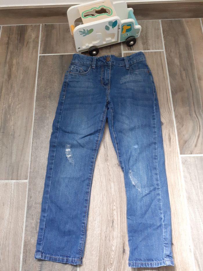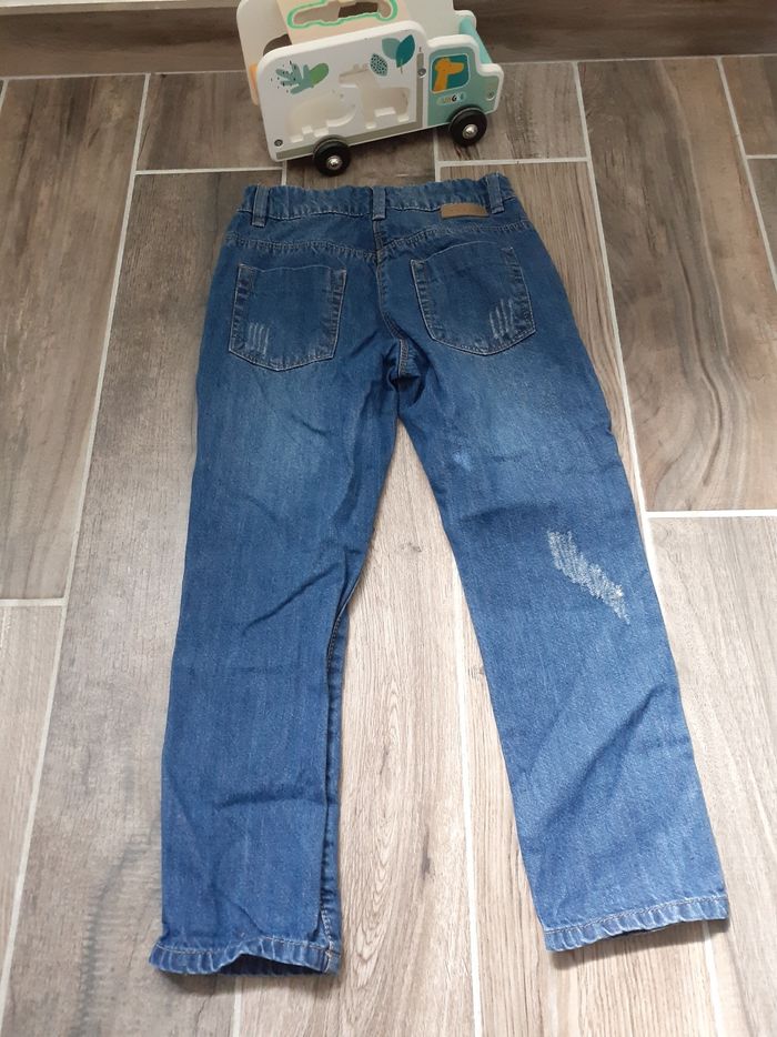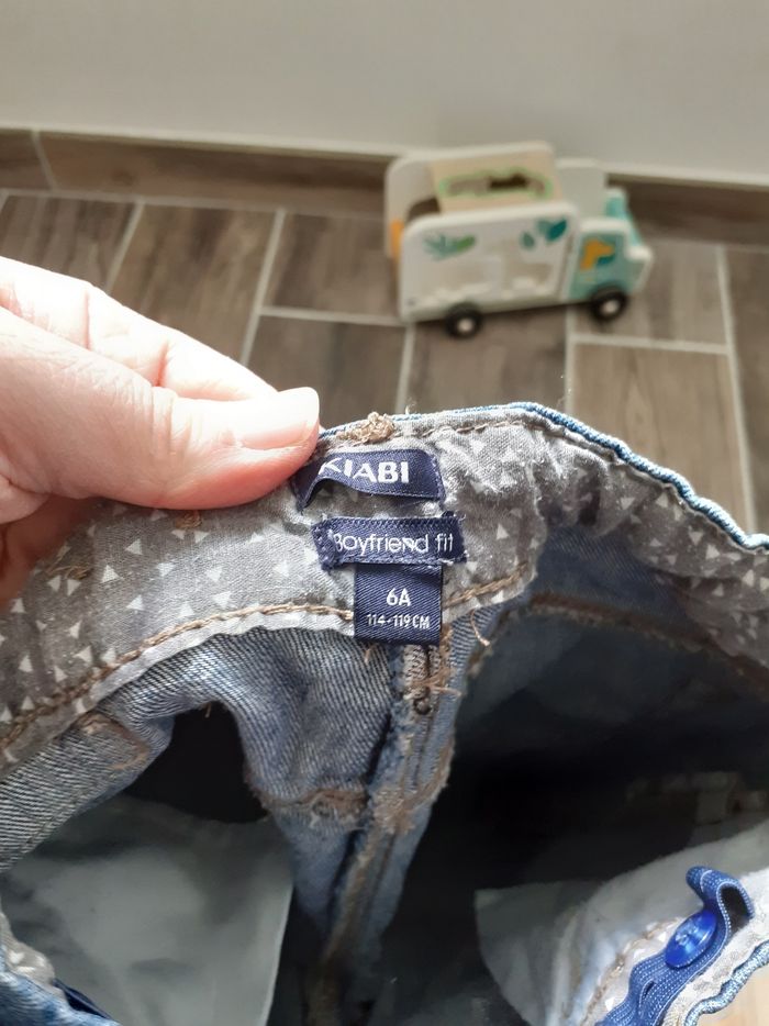 Pantalon en jeans coupe boyfriends taille 6 ans en très bon état, avec un l'élastique de réglage à la taille.