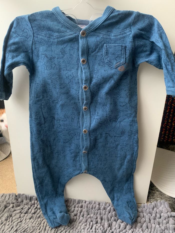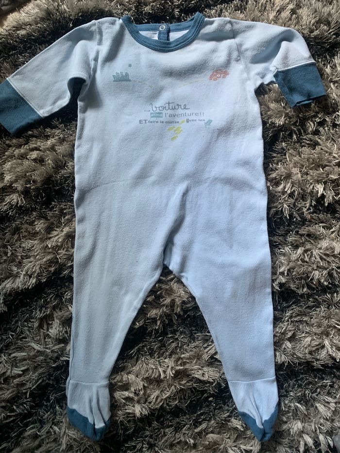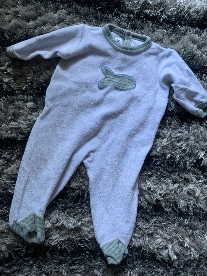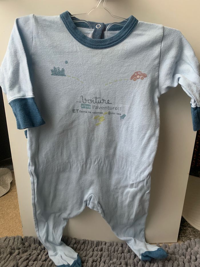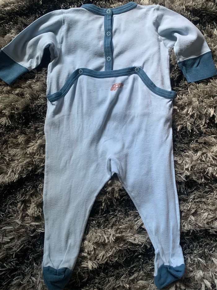 Lot de 3 grenouillères + (2 bodies offerts) 1 tâche peu visible sur l’un des articles Taille : 6 mois (67cm) Marque : petit bateau
