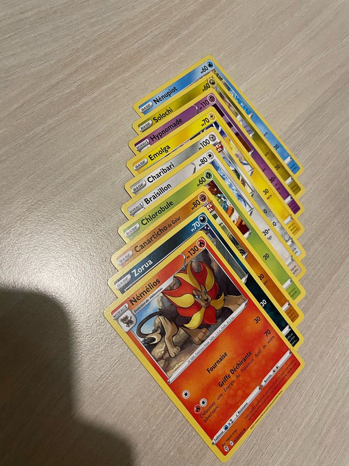 Bien lire l’annonce svp Ne pas acheter l’annonce,me contacter, j’en créerais une pour la vente Vend cartes Pokémon années 2020-2021-2022 Co unco 0,30€/carte Rare 0,5€/carte Reverse 1€/carte Holographique 1,5€/carte Possibilité de faire des lots : 10 cartes communes/peu co 2,5€ 20 carte commune /peu co 4,5€ (1 objet/dresseur+2 énergie offerte) 50 carte co/unco 10€ (1 holo ou reverse+1 objet/dresseur/stade+10 énergie offerte)