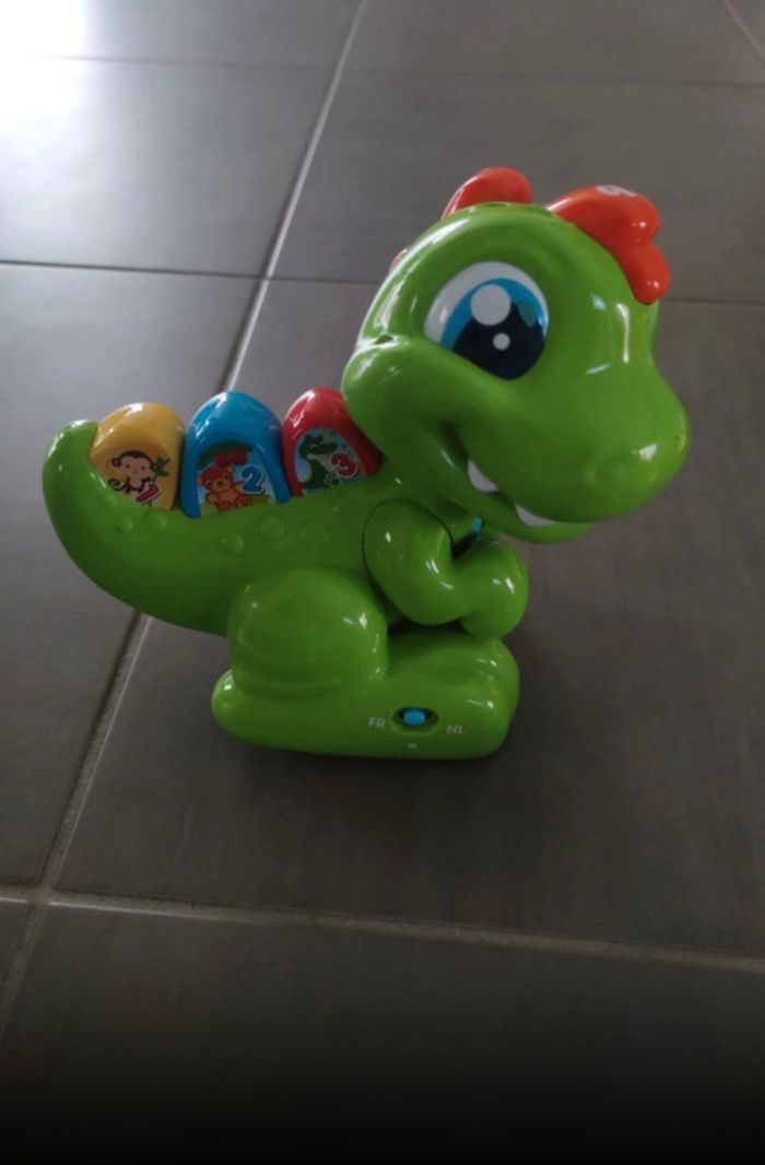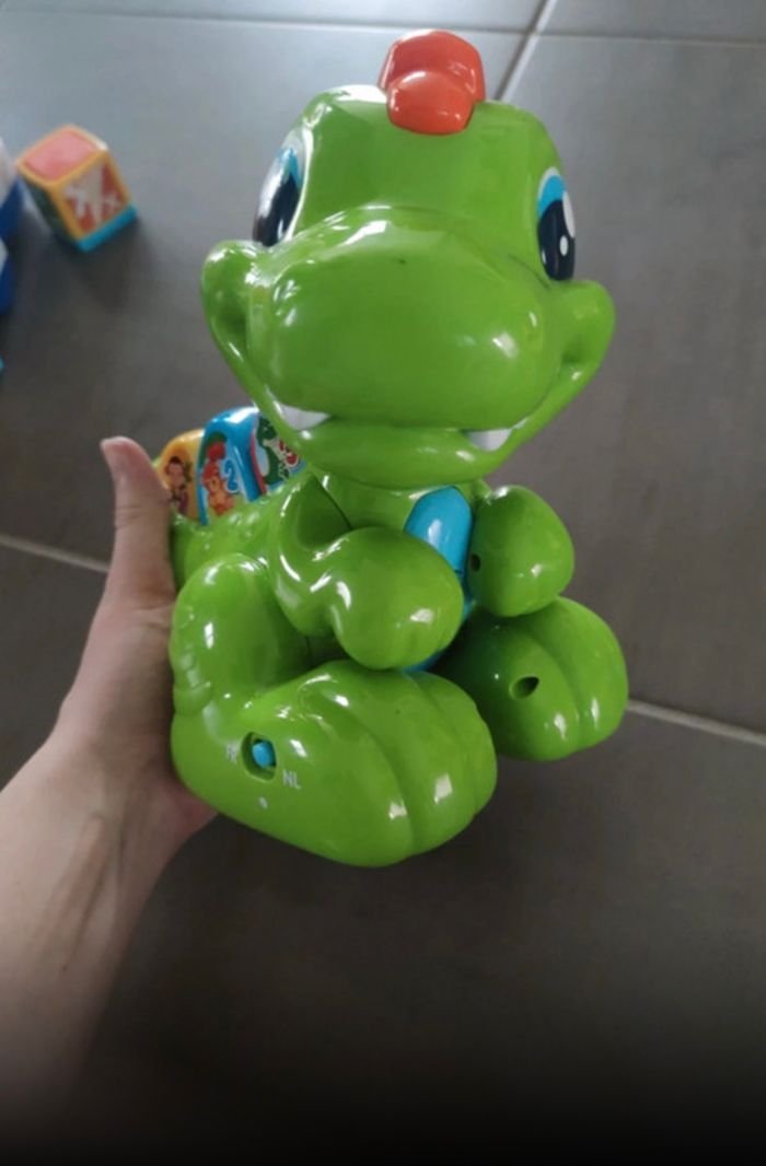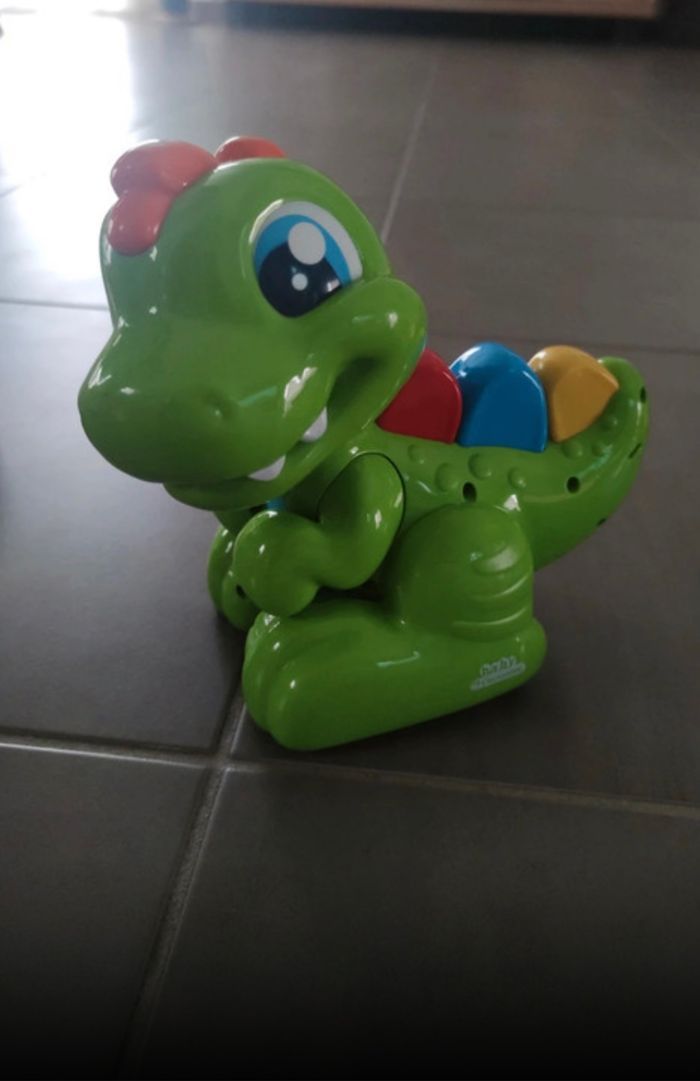 Robot petit dinosaure qui chante et bouge, fonctionne très bien. Jouet musical marque babyclementoni