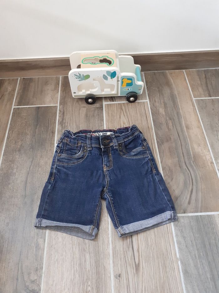 Short en jeans taille 6, en très bon état, avec un l'élastique de réglage à la taille.
