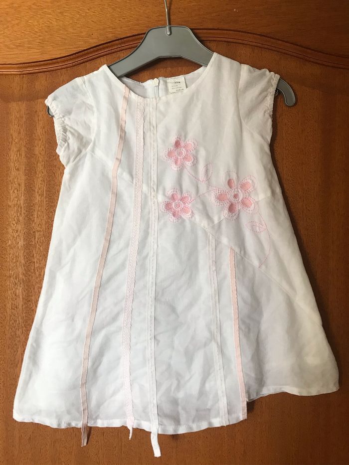 Robe 55% lin et 45% coton avec doublure 100% coton et motifs fleurs brodées sans étiquette 23 mois. Fermeture à l’arrière Très bon état