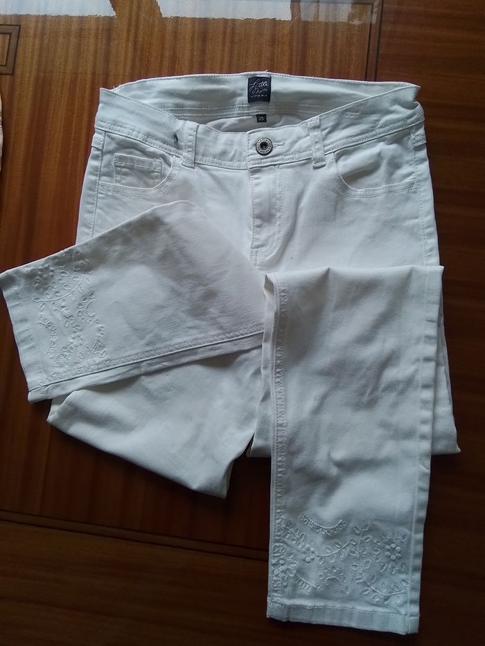 Jean blanc avec broderie anglaise en bas et durpoche arrière droite