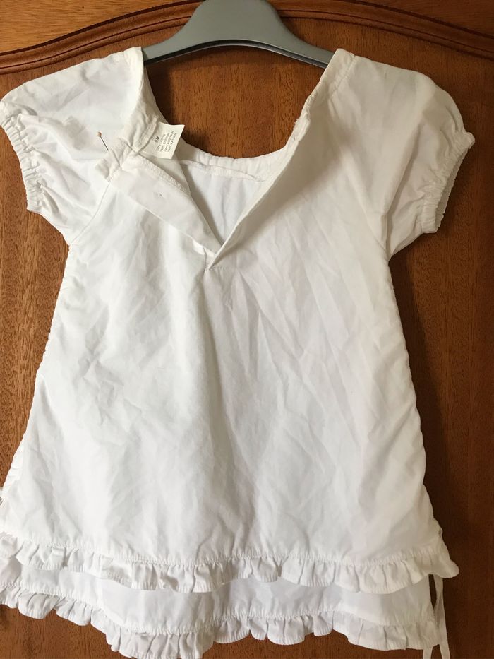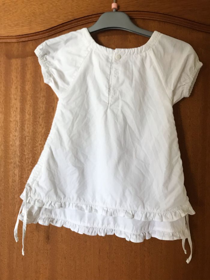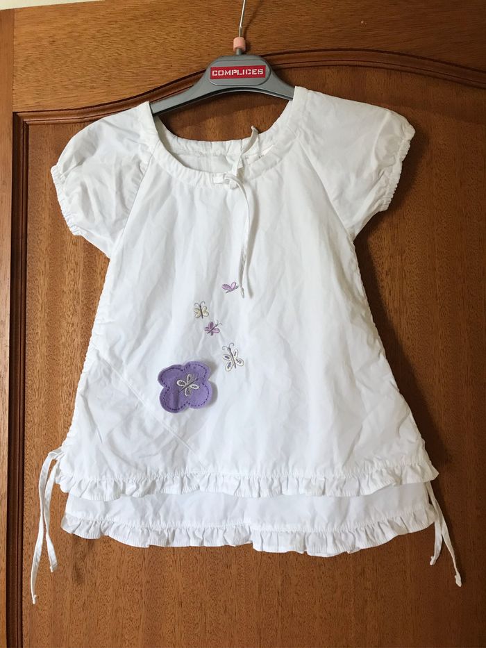 Robe blanche 9mois avec motifs papillons devant manches ballons et fermeture arrière boutons