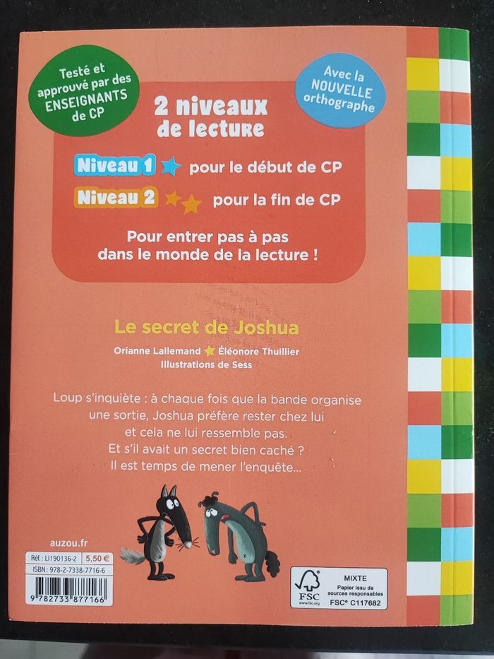 Bonjour, Je vends un livre le secret de Joshua mes lectures du cp avec loup neuflivre