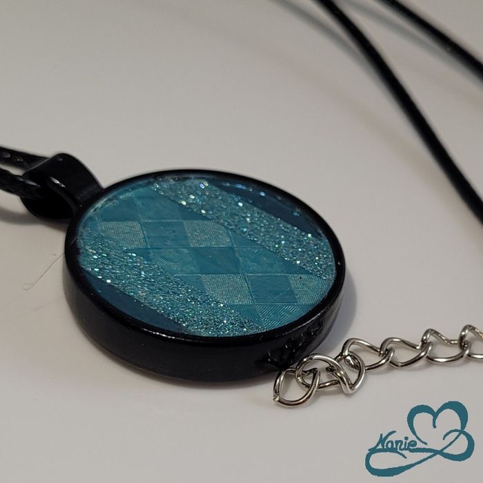 Pendentif en résine  réversible noir et bleu - photo numéro 4