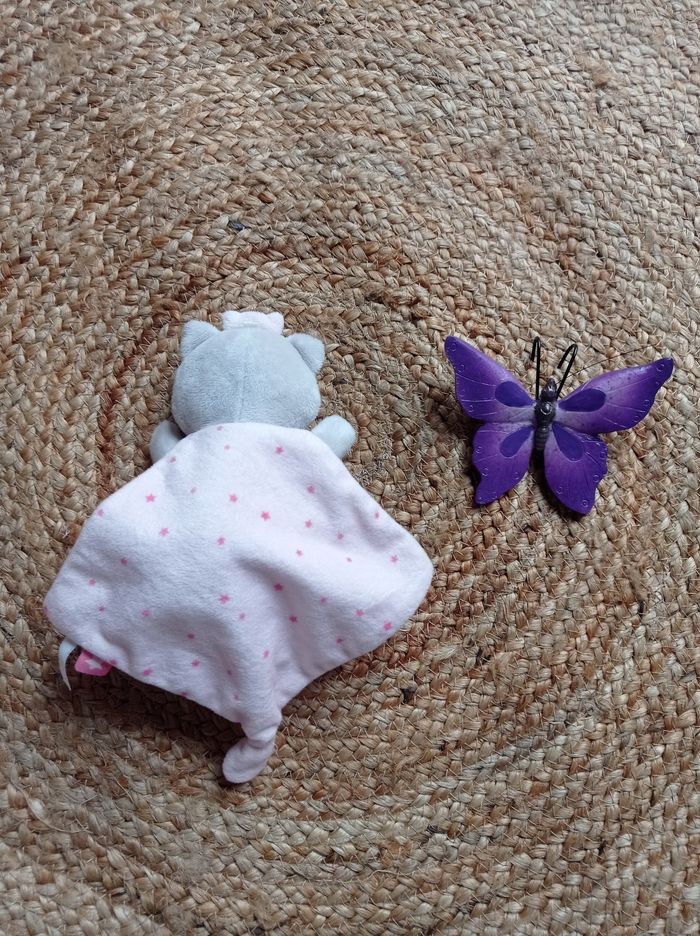Sucre d'orge mouchoir Peluche chat Rose gris Broderies étoile château #DCR_sucredorge #DCR_chat C001
