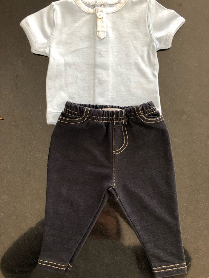 T-shirt neuf petits bateaux, un mois, 100 % coton dégrif le leggins et neuf, mais pas de marque petit bateau un mois