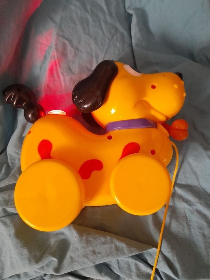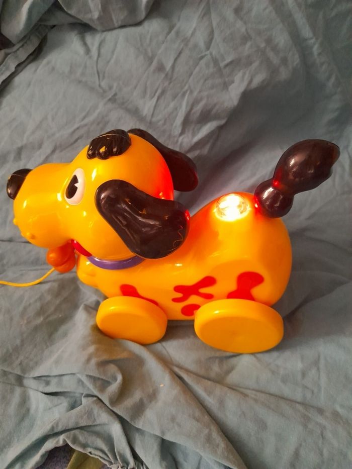 Chien en plastique lumineux et sonore que l on peut tirer par la ficelle