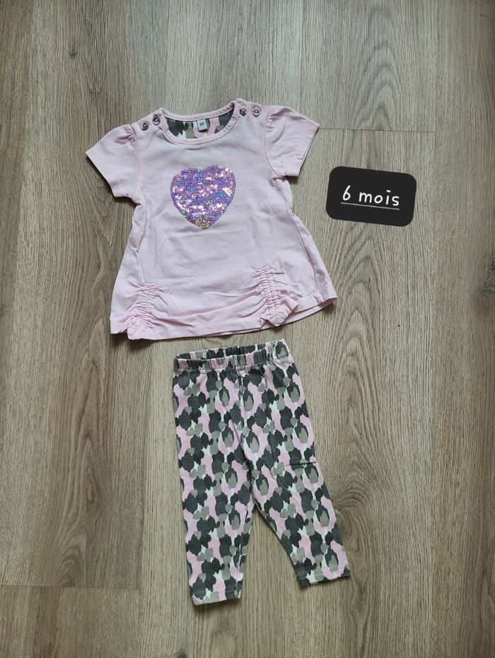 Ensemble tee-shirt legging 6 mois Un tee-shirt rose motif cœur pailleté Un legging DISPONIBLE RHÔNE 69 PROCHE 01 ET 42N'hésitez pas à créer votre propre lot, et me contacter si vous cherchez d'autres choses. 😉