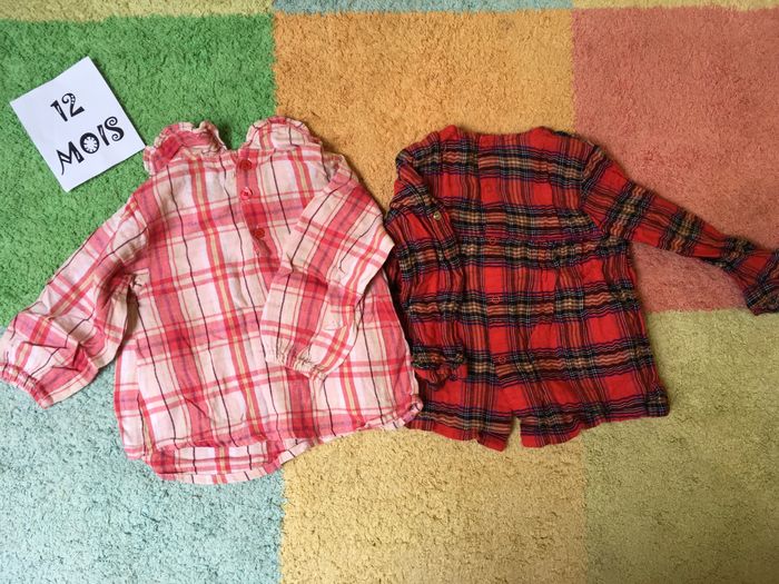 Vends en lot les vêtements de mes enfants, du bébé à l'enfant (vide dressing). Ici , un lot de 2 chemises / blouses à carreaux. En coton Taille : 12 mois Saison : printemps / été Etat : très bon état Marque : divers Pour, fille, Plusieurs tailles disponibles, vêtements pour garçon ou fille