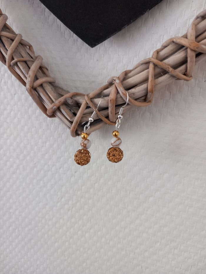 Réalisation d'une Très belle paire de boucles d'oreilles avec perles nacré blanc et orange et perle strass orange Envois rapide et soigner