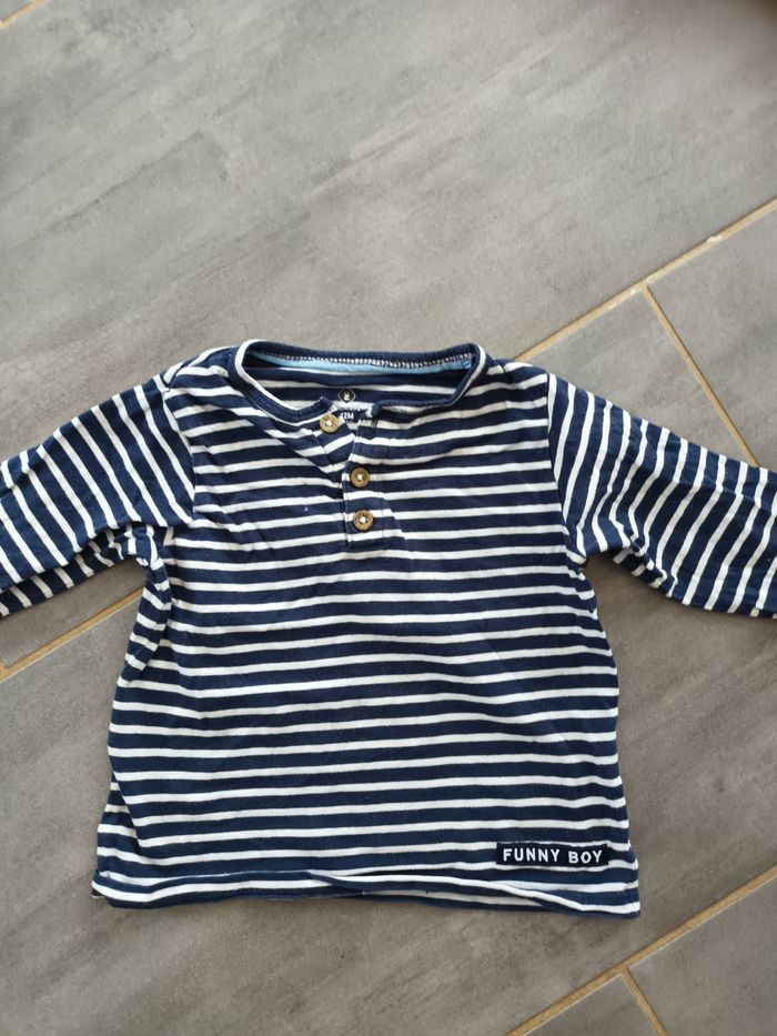 Bonjour je vend un t shirt a manche longue rayé bleu marine et blanc taille 12 mois