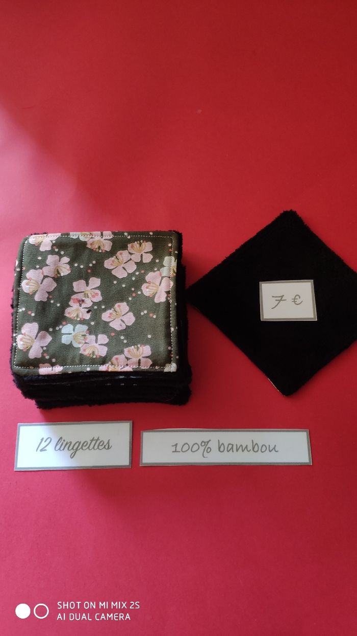 Tissu eko-tex et éponge bambou noir, 10 X10 cm, pour bébé et démaquillante pour les mamans 😀.