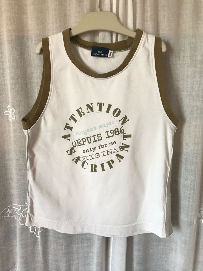 T-shirt débardeur Blanc et kaki Taille 6 ans Sergent-major