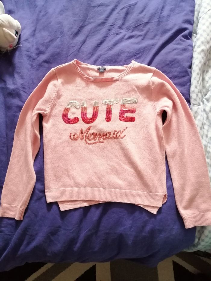 Bonjour je vend un fin pull avec brillant et faux boutons vers l'arrière voir sur la 2ème photo taille 6 ans en très bonne état
