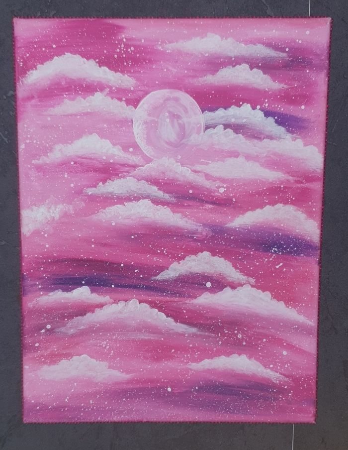 Tableau Ciel rose n uageux avec lune - photo numéro 1