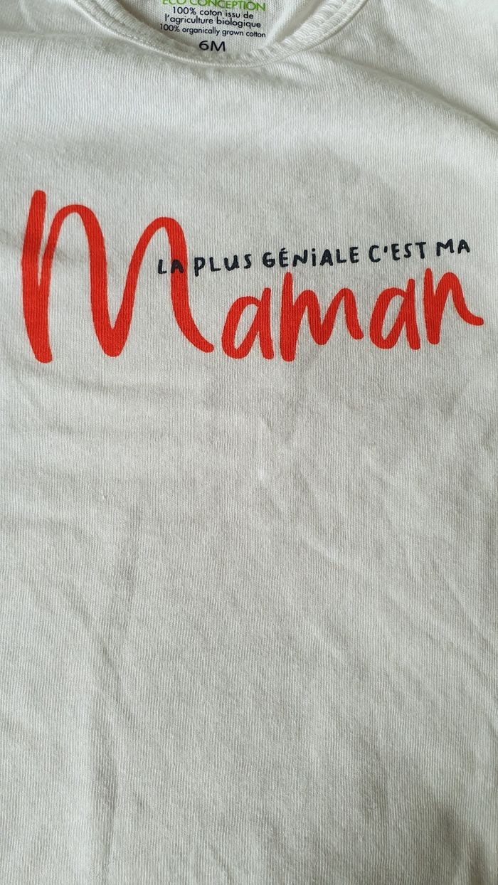 Tee-shirt bébé garçon ou fille, taille 6 mois, blanc, manches courtes, très bon état