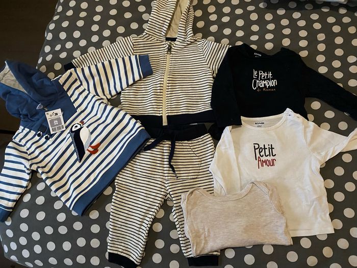 Kiabi okaidi 6 mois 1 ensemble 1body 2tee shirt 1 pull avec capuche