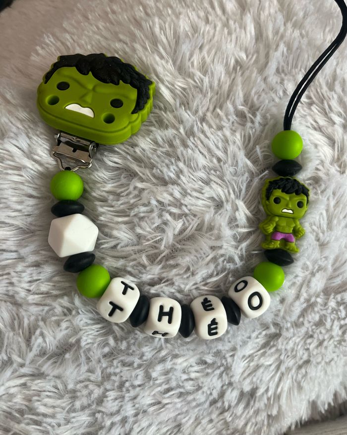 Attache tétine personnalisé en silicone ou en bois au souhait de l’acheteur . Personnalisable au choix de l’acheteur que ce soit la couleur comme le prénom ou le thème . Le fil est doublé pour plus de sécurité tout le long de l’attache tétine. N’hésitez pas à me demander et regarder mon dressing. Une photo vous sera envoyée avant l’expédition pour vous ayez un aperçu du rendu. Tous les produits sont réalisés avec du materiel spécial conçu aux bébés , enfants.