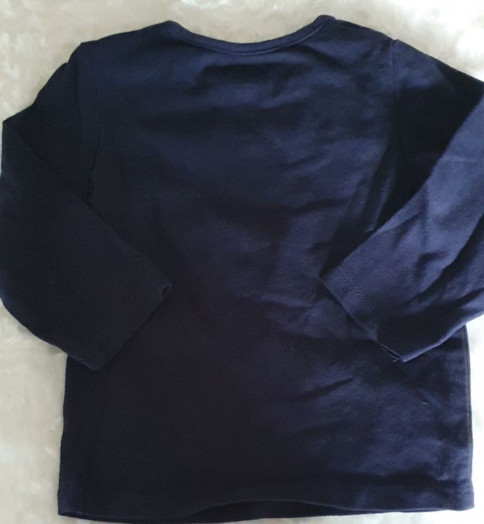 Tee-shirt bébé garçon bleu marine, manches longues, taille 6 mois, très bon état, marque Kiabi