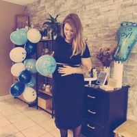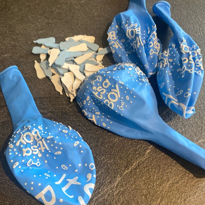 4 ballons et des biberons en bois pour décorer votre gender reveal