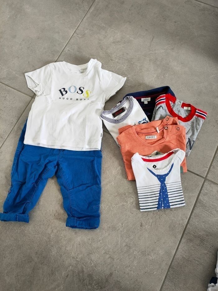 Le lot comprend: - 5 tee shirts de marque Hugo Boss, IKKS, United colors of Benetton, Catimini et Z - 1 polo Jacadi - 1 pantalon État quasi neuf