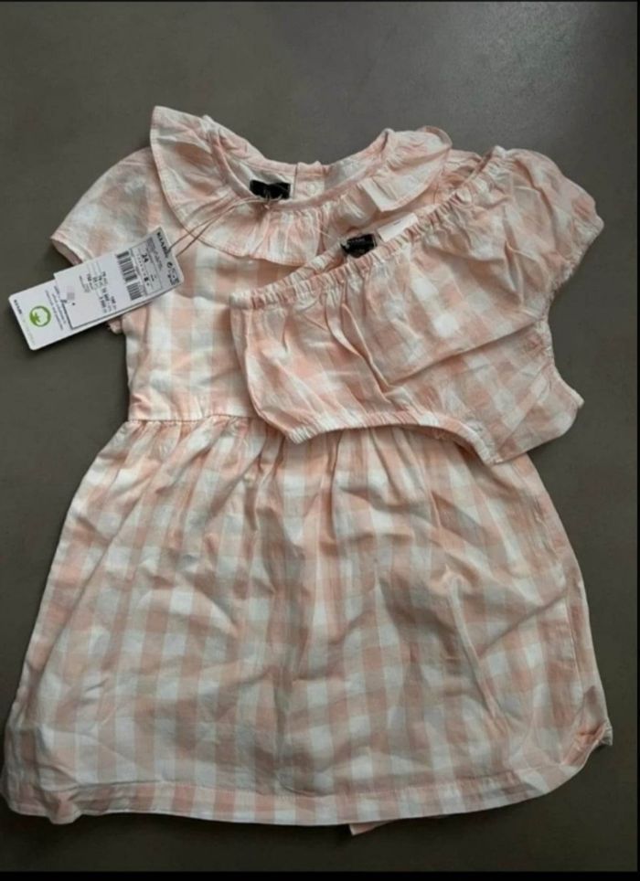 Robe blanc et coleur pêche à carreaux Avec bloomer Comme neuf Porté 1 fois Photo prise au moment de l'achat pour ça l'étiquette (n'a plus d'étiquette) Kiabi 24mois