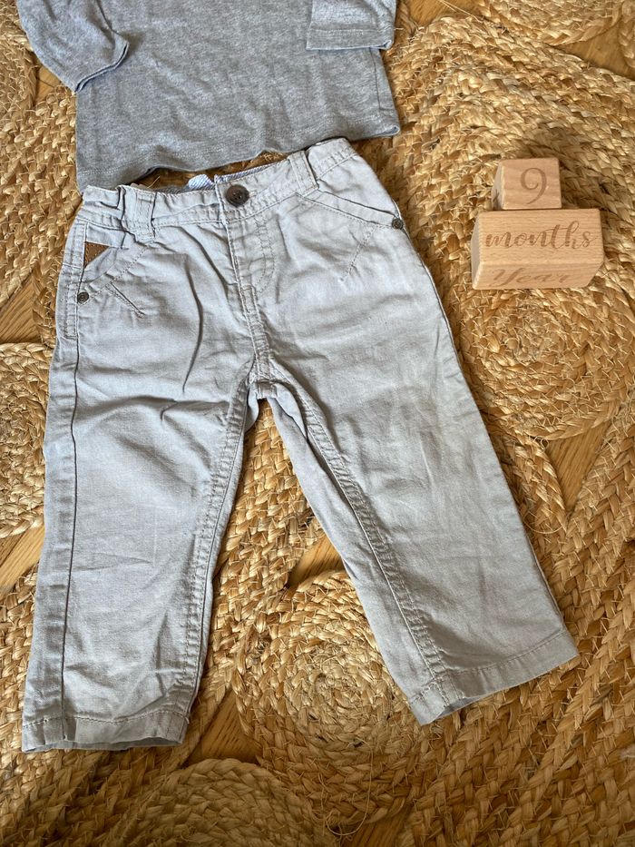 Ensemble 9 mois okaidi gris pantalon et tee shirt manches longues - photo numéro 2