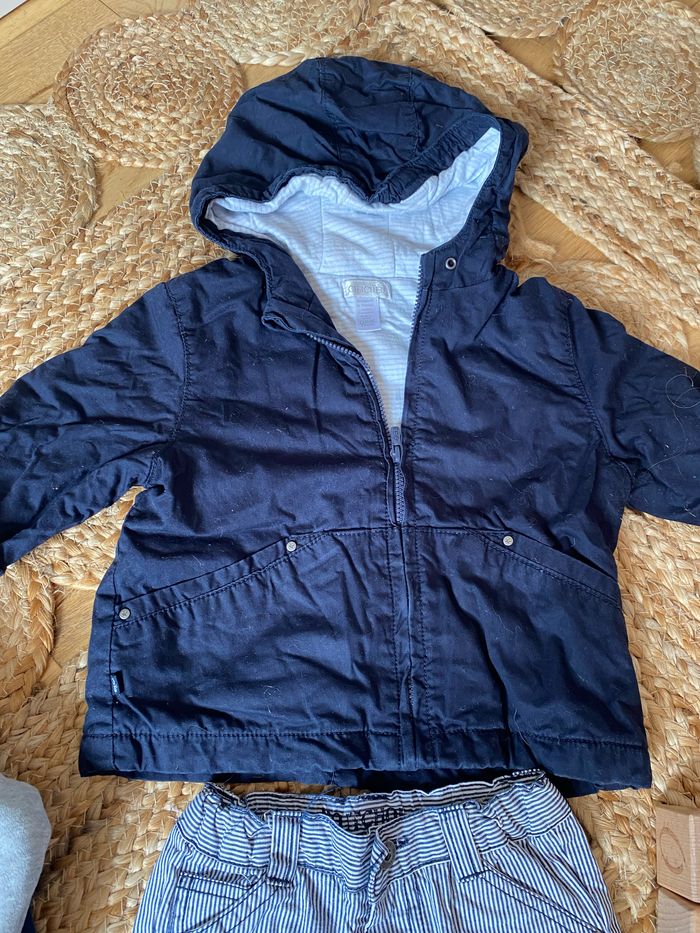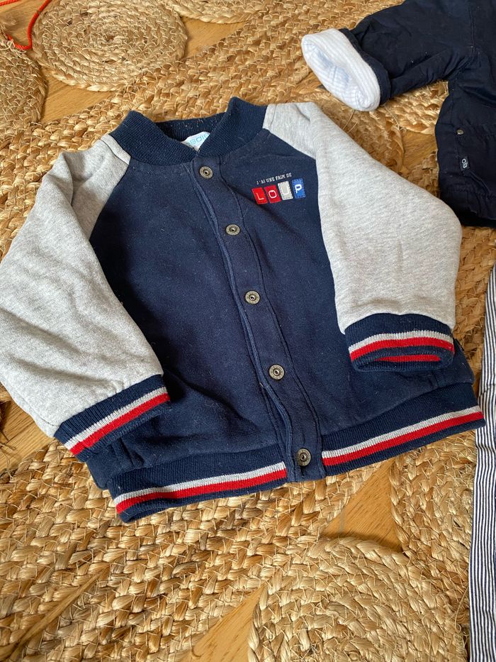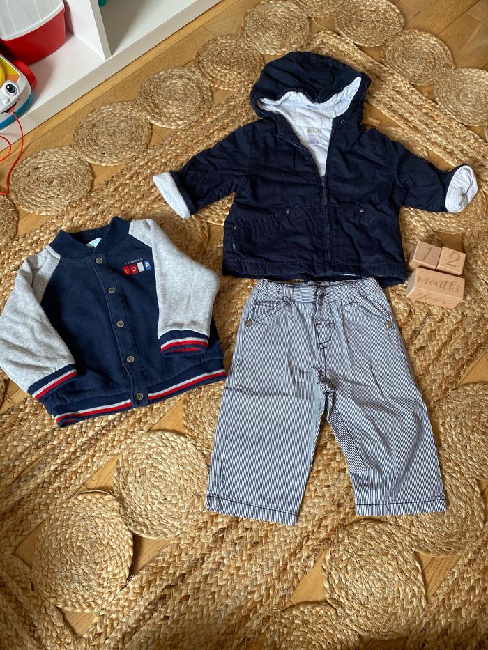 Lot 12 mois coupe vent bleu marine pantalon rayé boutchou et bombées petit loup okaidi