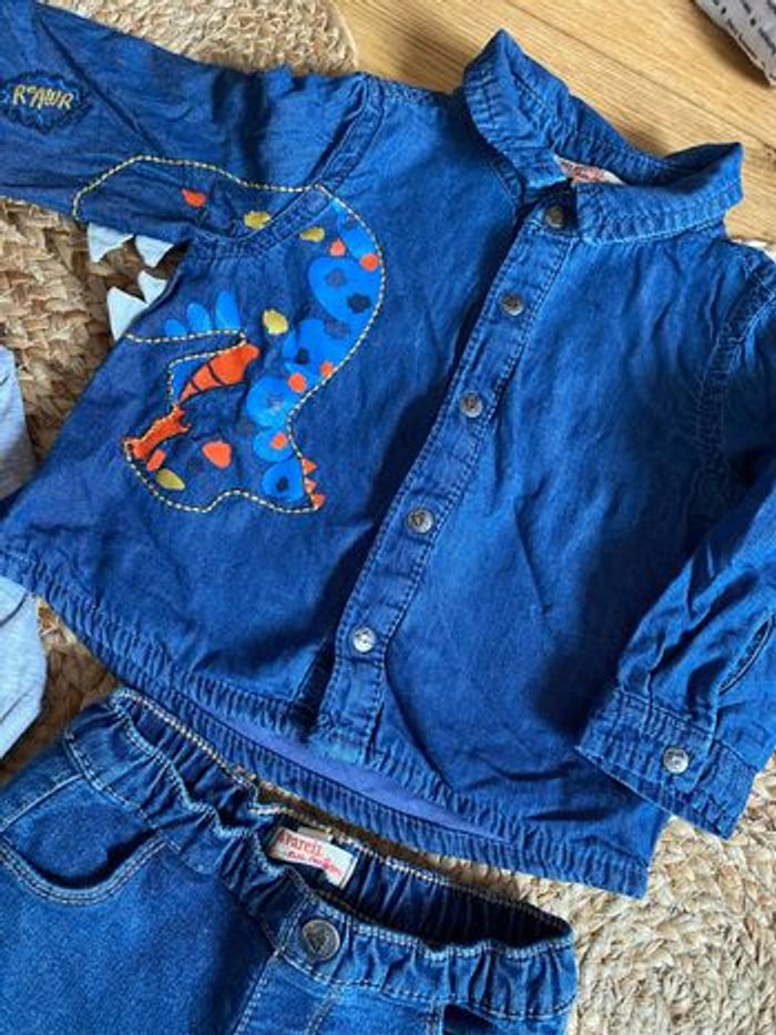 Ensemble pantalon tee shirt et chemise en jean taille 9 mois DPAM