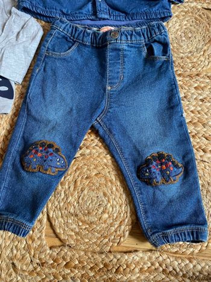 Ensemble pantalon tee shirt et chemise en jean taille 9 mois DPAM - photo numéro 3