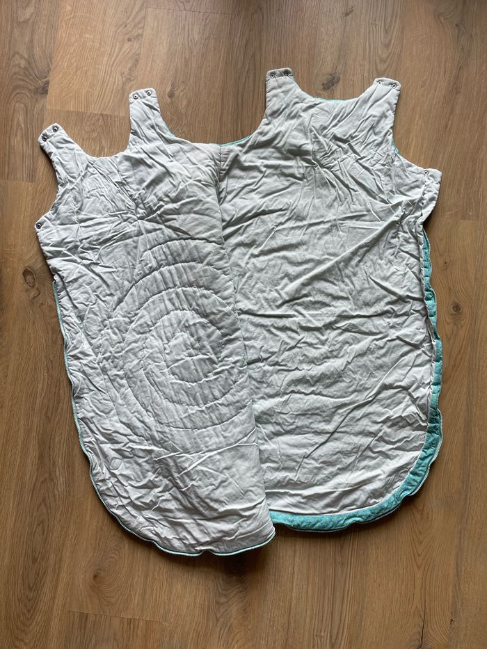 Gigoteuse moelleuse de la marque Petit Pan. Idéale automne/hiver. Elle a très peu servi car mon fils a commencé à dormir sans peu après l’avoir acheté