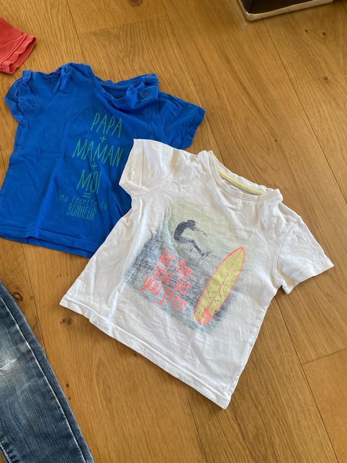 Une Jean Okaidi slim 2 ans 2 polo Okaidi Un body manches longues 3 tee shirt ( un verbaudet, un z et un Okaidi)