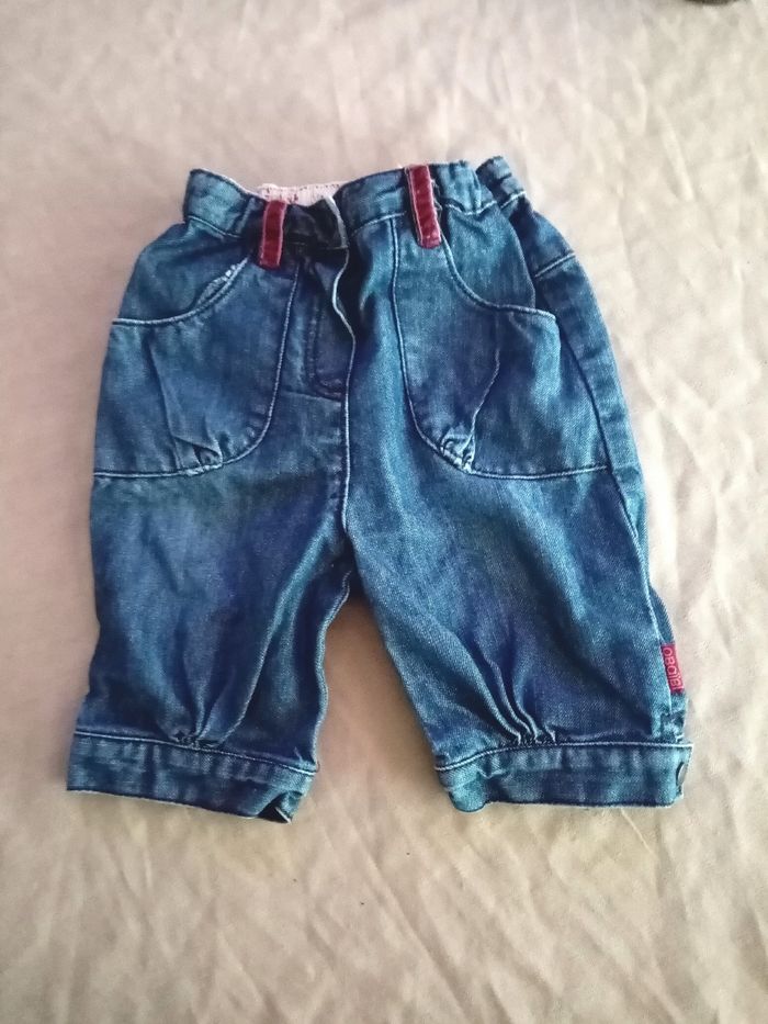 Jean bleu et rouge, fille, 12 mois, obaibi - photo numéro 1
