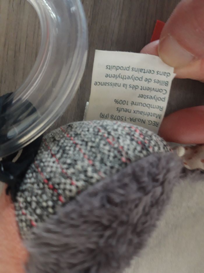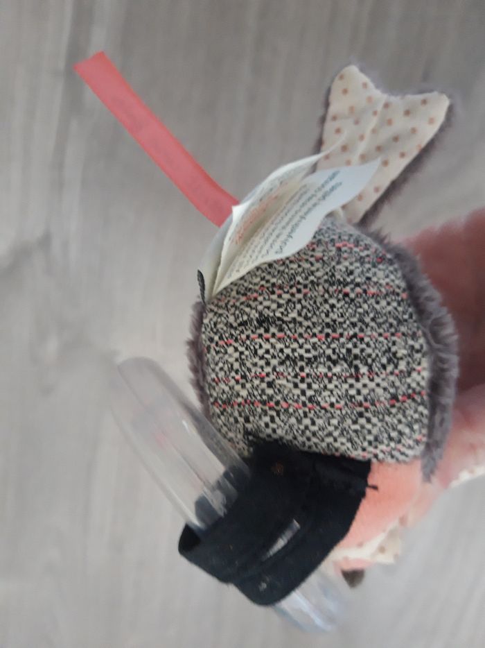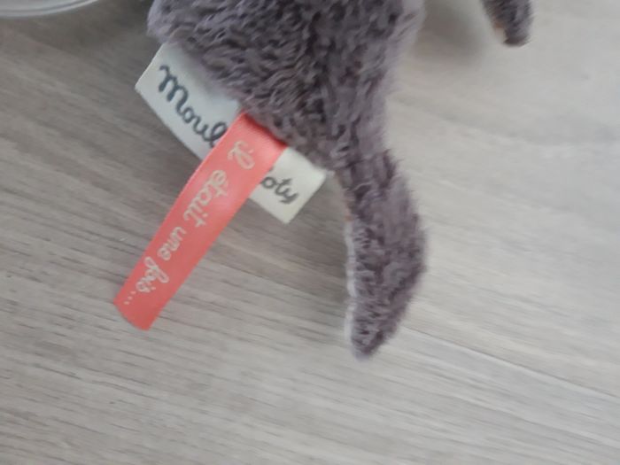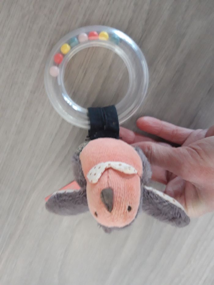 Joli hochet oiseau / rouge-gorge Moulin Roty. Billes dans l'anneau pour faire du bruit. Dès la naissance, lavable à 30°C en machine.