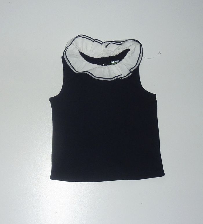 Débardeur neuf marine éco conception, orné d'un col chic volanté