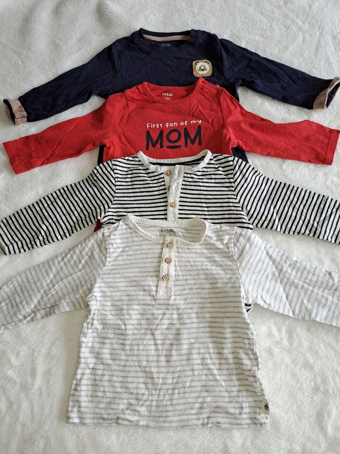 Lot de 4 hauts manches longues Le bleu de chez obaibi Les 3 autres de chez kiabi 12 mois Peu porté