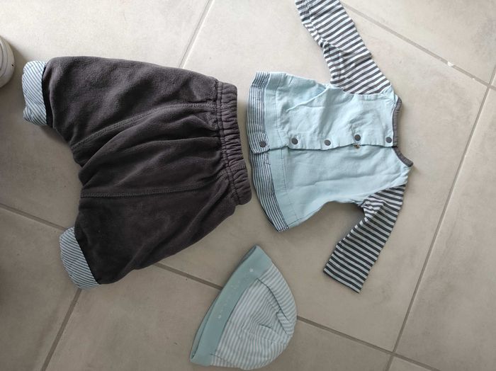 Ensemble Orchestra taille 1mois en parfait état, composé d 'un pantalon épais et d'un tee shirt manches longues. ,je rajoute le bonnet qui va bien avec 😉